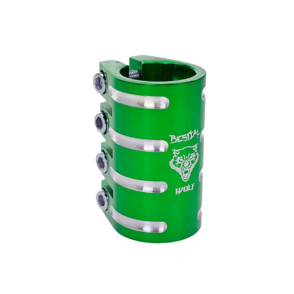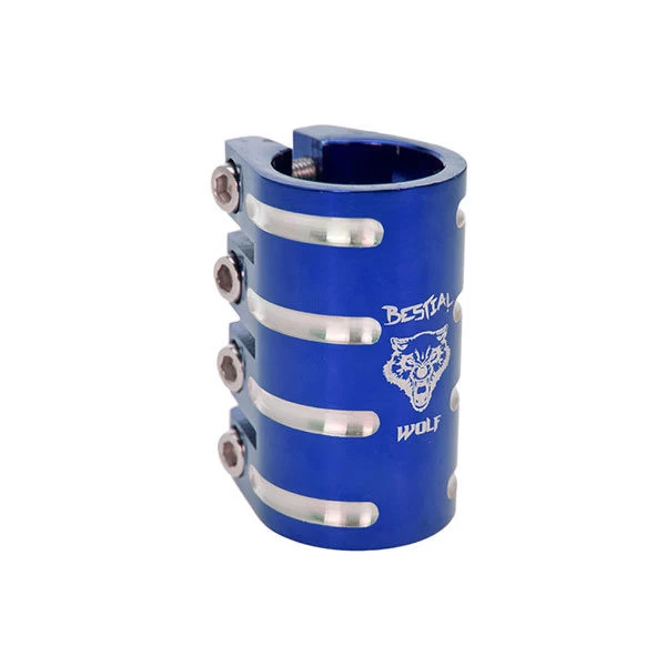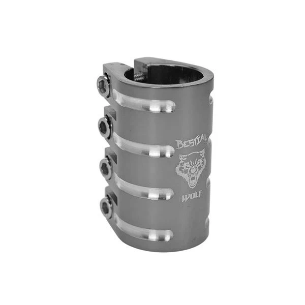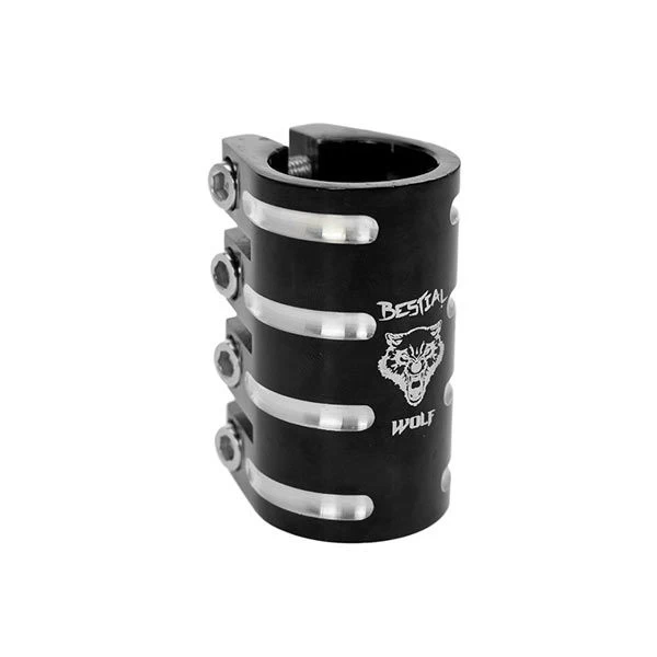 El nuevo Clamp Bestial Wolf  de aluminio anodizado dureza 7005 te permitirá tener mayor sujeción y estabilidad en tu scooter y facilitar tus maniobras de freestyle, gracias a sus 4 tornillos. Se puede montar en manillares standard de 32mm de diámetro.
