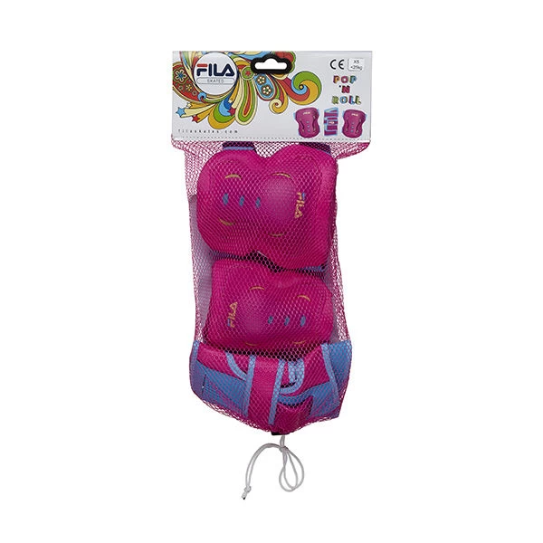 El pack de protecciones BELLA Gears forma parte del conjunto de protecciones junior de Fila con un diseño muy divertido y llamativo para los niños, en colores rosas con detalles en azul. Son muy cómodas y fáciles de poner.