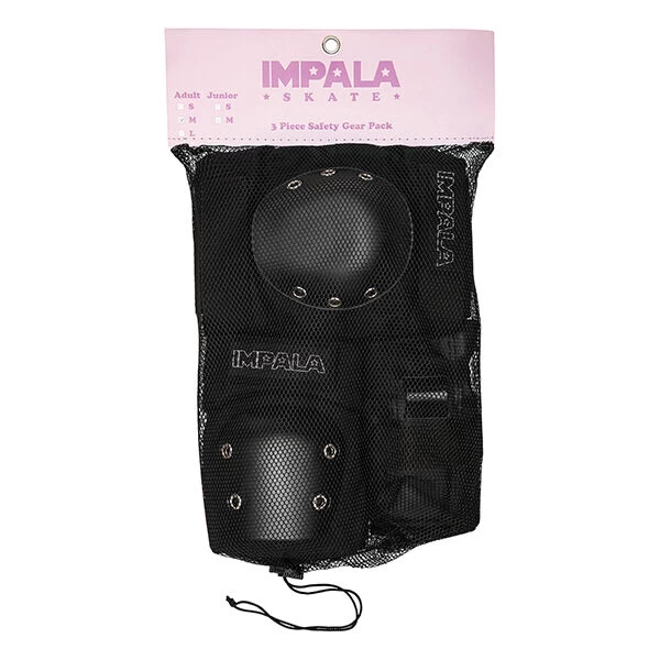 El pack de protecciones Black de Impala son cómodas, con un tejido suave y duradero, diseñadas en un color muy sufrido, para combinar con todos tus looks de skater.