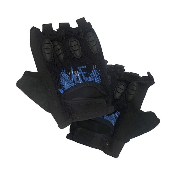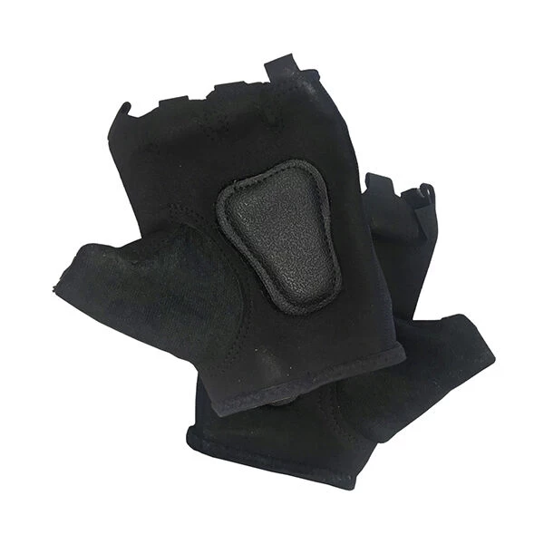 Poliéster negro resistente a la abrasión y tejido de Lycra. Cierre ancho ajustable de velcro y malla de ventilación. Protector blando extraible.