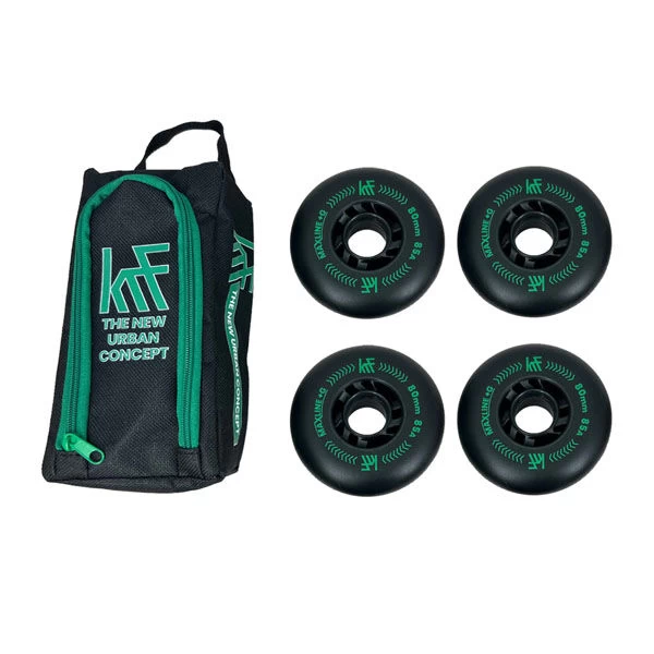 Las ruedas Maxline +G están diseñadas para especialidad freeskate de patines en lÃnea KRF. Excelente agarre en todo tipo de superficies, incluso en las rugosas, elevada velocidad, gran absorción de impactos, muy buen balance y equilibrio, entre el desgaste y el agarre en todas las superficies, muy buena durabilidad, realizándose periódicamente las rotaciones de las ruedas.