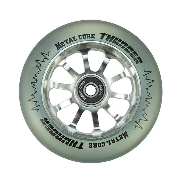 La Rueda Thunder de Metal Core 110mm transparente está especialmente diseñada para patinetes de trucos o freestyle scooter pro. Apta para uso en calle y parques de patinaje.