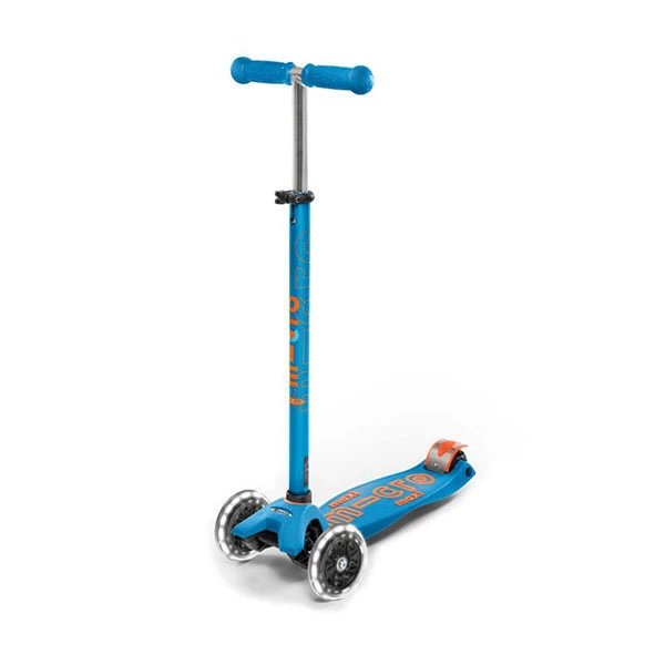 El Maxi Deluxe Led de Micro nace con la idea de ser el siguiente paso para los niños tras el Mini Micro, ya que aún son demasiado pequeños para un Kickboard de aluminio. La edad recomendada para el Maxi Micro es de 5 a 12 años. Su suave dirección y su base antideslizante le daran al niño una conducción especialmente segura sobre su Maxi Micro Deluxe.
