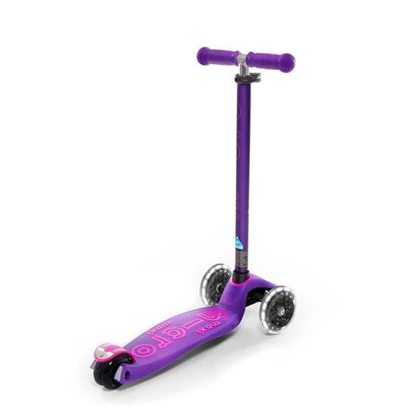 El Maxi Deluxe Led de Micro nace con la idea de ser el siguiente paso para los niños tras el Mini Micro, ya que aún son demasiado pequeños para un Kickboard de aluminio. La edad recomendada para el Maxi Micro es de 5 a 12 años. Su suave dirección y su base antideslizante le daran al niño una conducción especialmente segura sobre su Maxi Micro Deluxe.