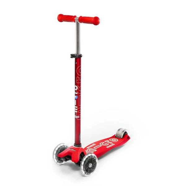 El Maxi Deluxe Led de Micro nace con la idea de ser el siguiente paso para los niños tras el Mini Micro, ya que aún son demasiado pequeños para un Kickboard de aluminio. La edad recomendada para el Maxi Micro es de 5 a 12 años. Su suave dirección y su base antideslizante le daran al niño una conducción especialmente segura sobre su Maxi Micro Deluxe.