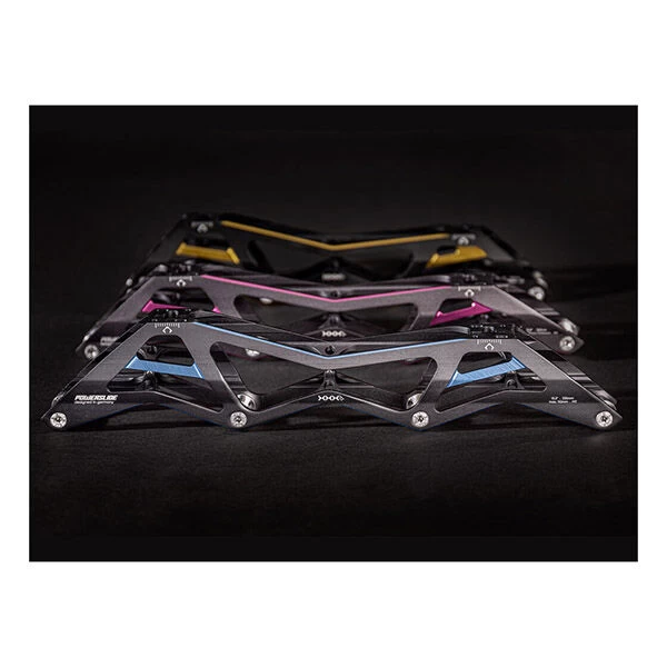 Powerslide desarrolla el cuadro XXX4. Las ventajas críticas para el patinaje de velocidad, como ser más rígido y más estable, están en el corazón del sistema de montaje de Powerslide. Extruido y mecanizado con CNC a partir de aluminio aeroespacial para garantizar que el cuadro cumpla con las demandas de rendimiento de los mejores corredores del mundo. Este cuadro mide 13.2” de largo y tiene un tamaño máximo de rueda de 4x110mm. Compatible con control de zancada.