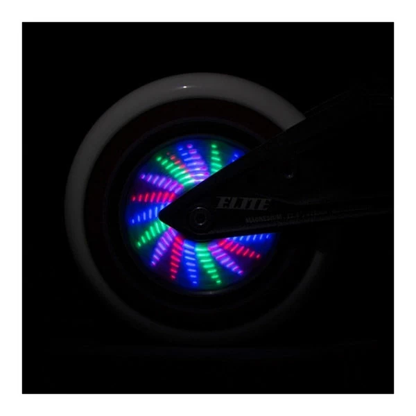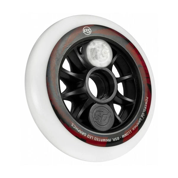 La Rueda Graphix de Powerslide iluminará tu viaje, pero solo cuando lo desées. El dispositivo integrado en el núcleo de la rueda con 7 LED ultraligeros se puede apagar. Su aspecto genial proviene de la apariencia, ya que los LED crean diseños geométricos, nombres y logotipos en diferentes colores, lo que te hace destacar entre la multitud. La luz LED se puede recargar a través de un mini USB. Ésto significa que las ruedas no sufren resistencia magnética y el rendimiento de la rueda no se ve afectado. Estas ruedas son rápidas y duraderas. Tamaño en 110mm y dureza 82a. El inserto LED estará disponible a la venta por separado también, en tres opciones de diseño y color diferentes con múltiples gráficos y colores.