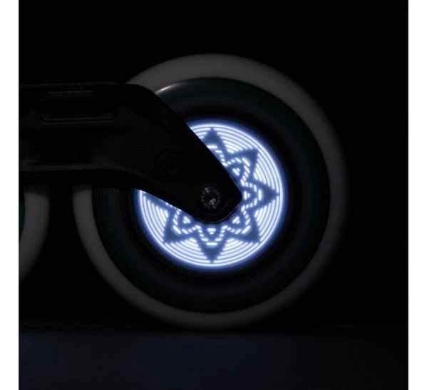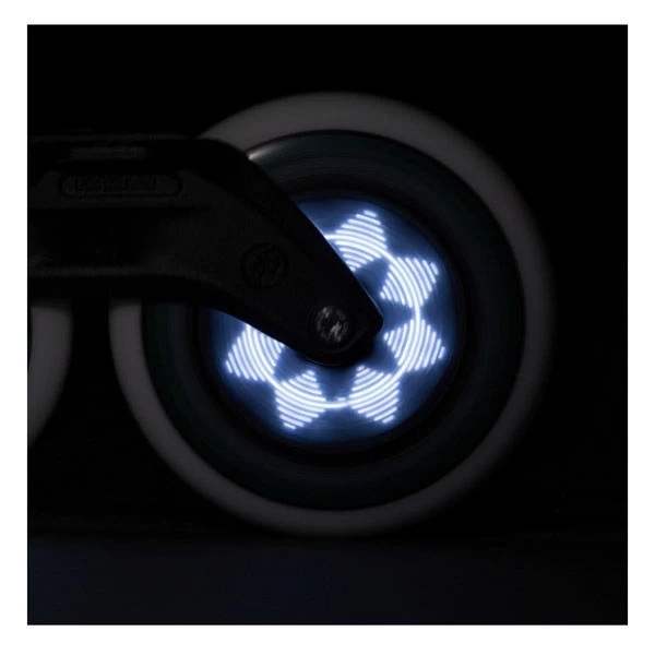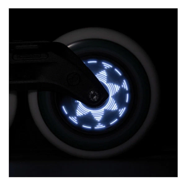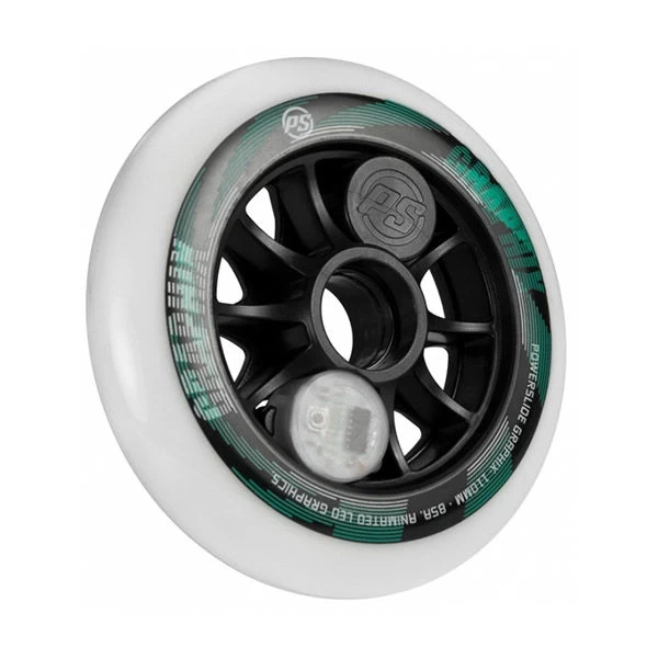 La Rueda Graphix de Powerslide iluminará tu viaje, pero solo cuando lo desées. El dispositivo integrado en el núcleo de la rueda con 7 LED ultraligeros se puede apagar. Su aspecto genial proviene de la apariencia, ya que los LED crean diseños geométricos, nombres y logotipos en diferentes colores, lo que te hace destacar entre la multitud. La luz LED se puede recargar a través de un mini USB. Ésto significa que las ruedas no sufren resistencia magnética y el rendimiento de la rueda no se ve afectado. Estas ruedas son rápidas y duraderas. Tamaño 110mm y dureza 82a. El inserto LED estará disponible a la venta por separado también, en tres opciones de diseño y color diferentes con múltiples gráficos y colores.